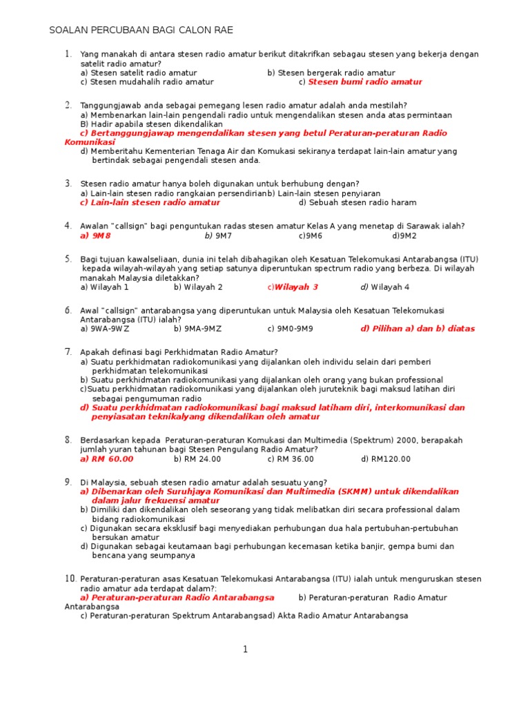 Contoh Soalan Rae Untuk Kokurikulum Radio Amatur Psmza Sesi Jun 2016