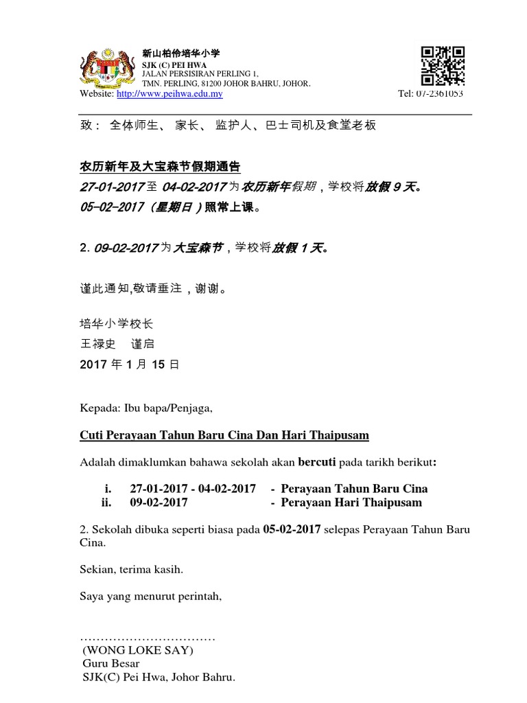 Sekolah Kebangsaan Petaling 1 Cuti Tahun Baru Cina 2017