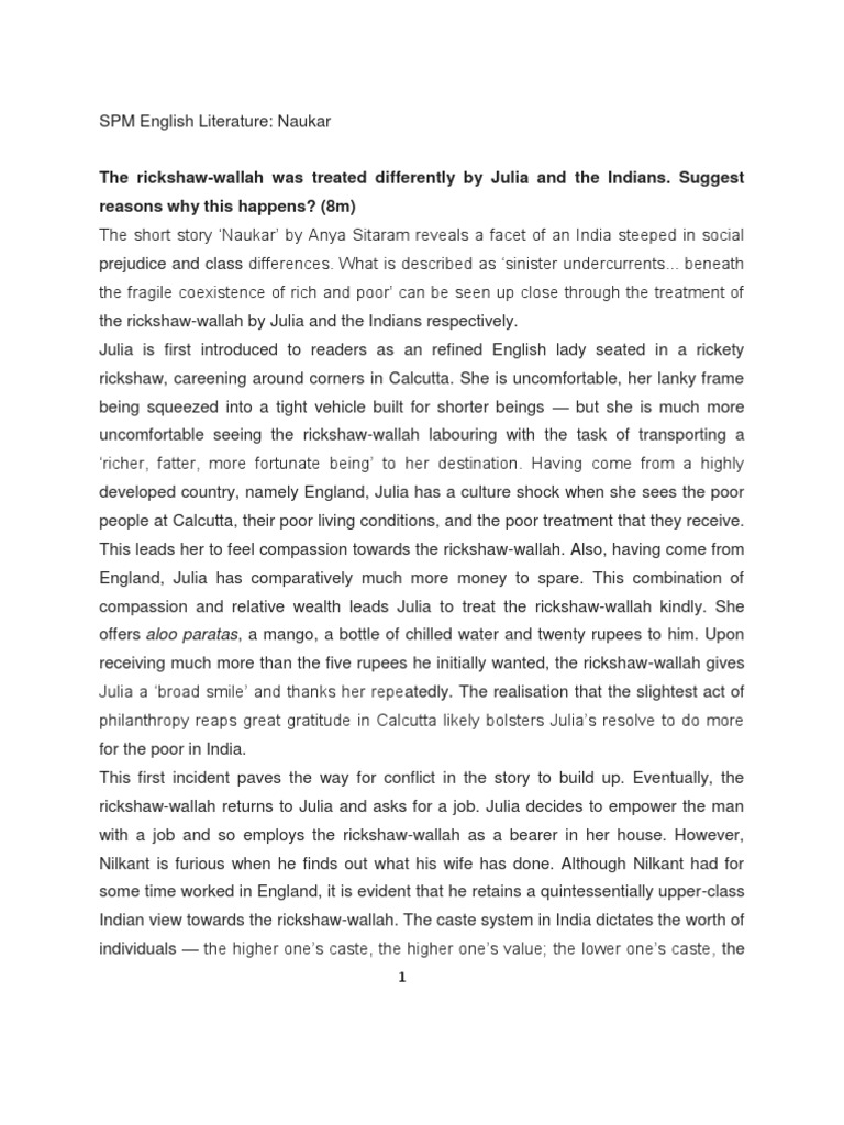 Spm English Literature Naukar Poverty Poverty Homelessness Uji Coba Gratis 30 Hari Scribd